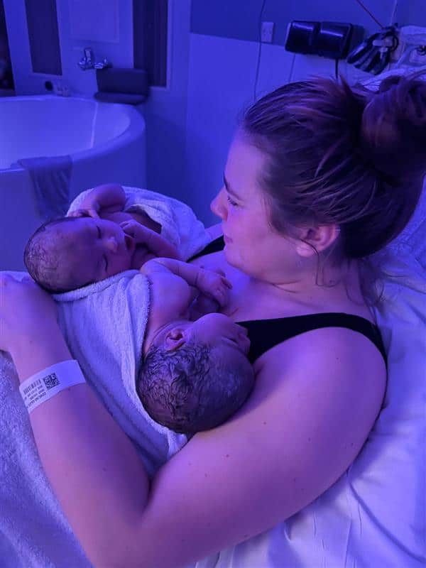 Because she was pregnant with twins, Scarlett had done “a tonne of research” before deciding that she wanted to have a home birth this time around. She felt she had a complete understanding of “any and all” risk factors in her case and wasn’t willing to accept the blanket ‘no’ women pregnant with twins are often faced with when requesting a home birth.