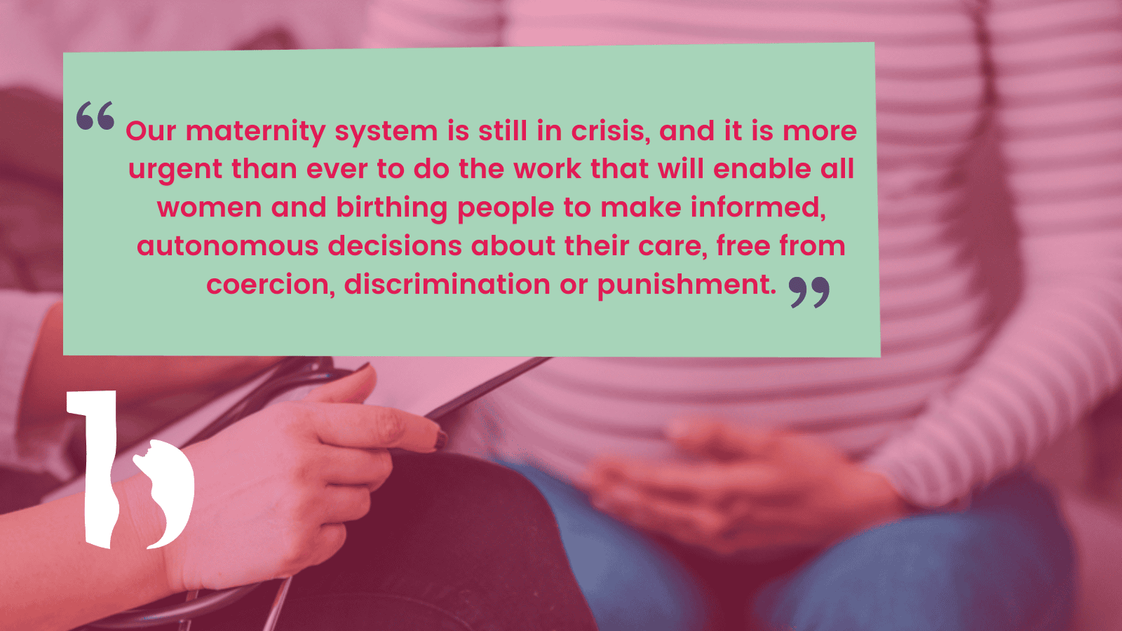 Our maternity system is still in crisis, and it is more urgent than ever to do the work that will enable all women and birthing people to make informed, autonomous decisions about their care, free from coercion, discrimination or punishment.